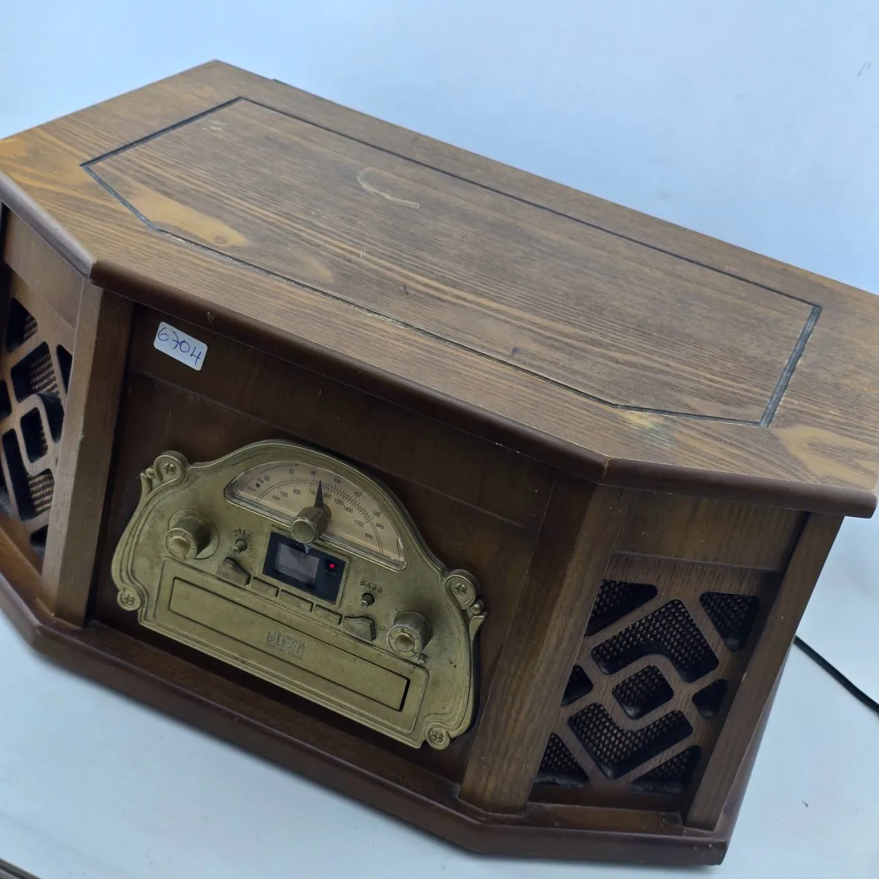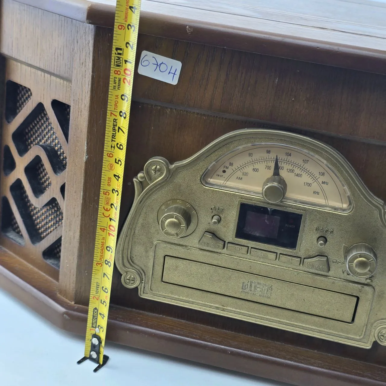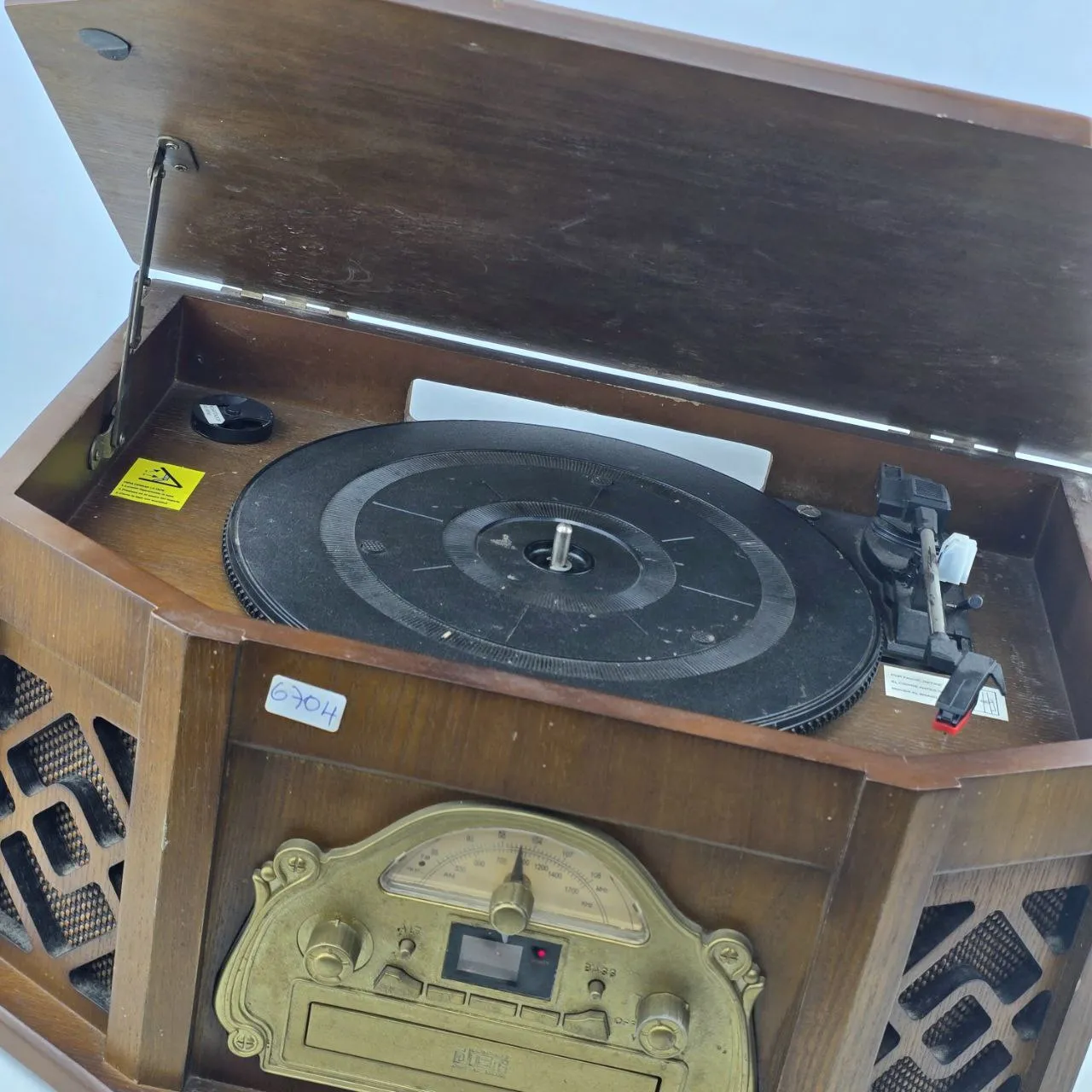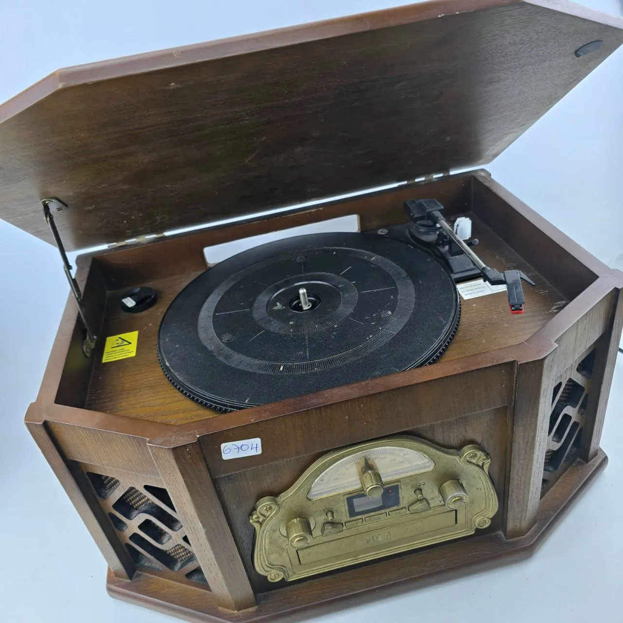Funciona radio y toca discos, CD no lee, casette no se probo