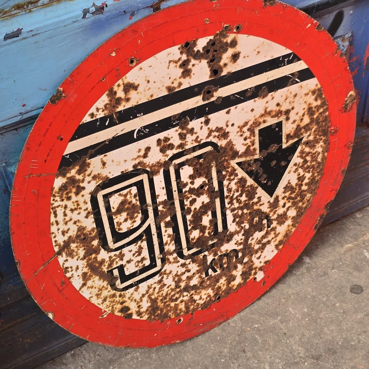Señal de hace m{as de 30 años con detalles, pueden tener algun balazo de epoca.
