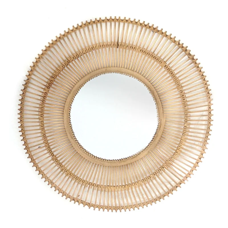Espejo círculosde fibras natural, última tendencia Boj