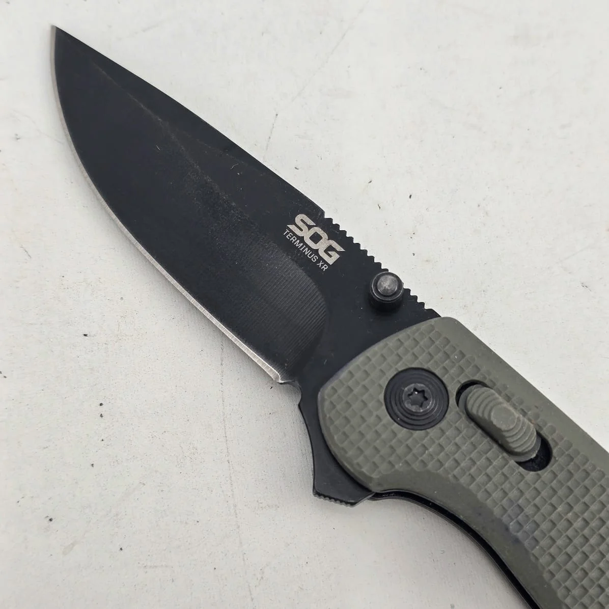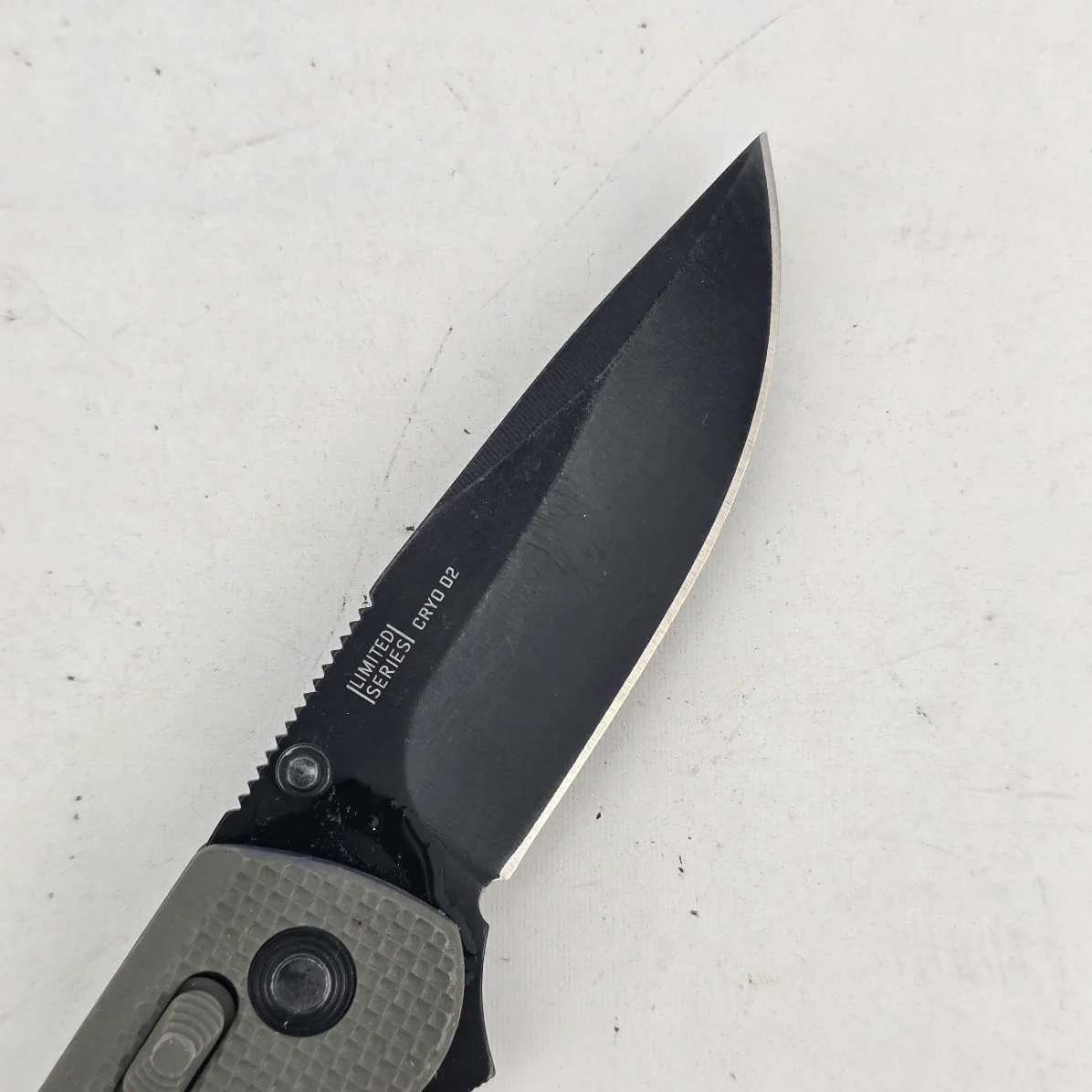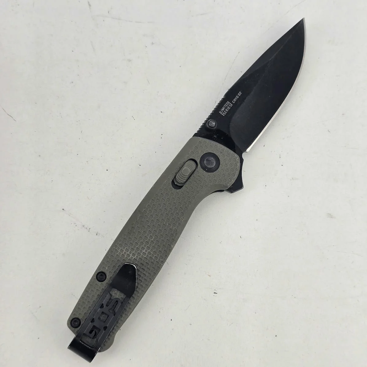 Hoja y cuerpo en acero, cachas en polímero, con seguro