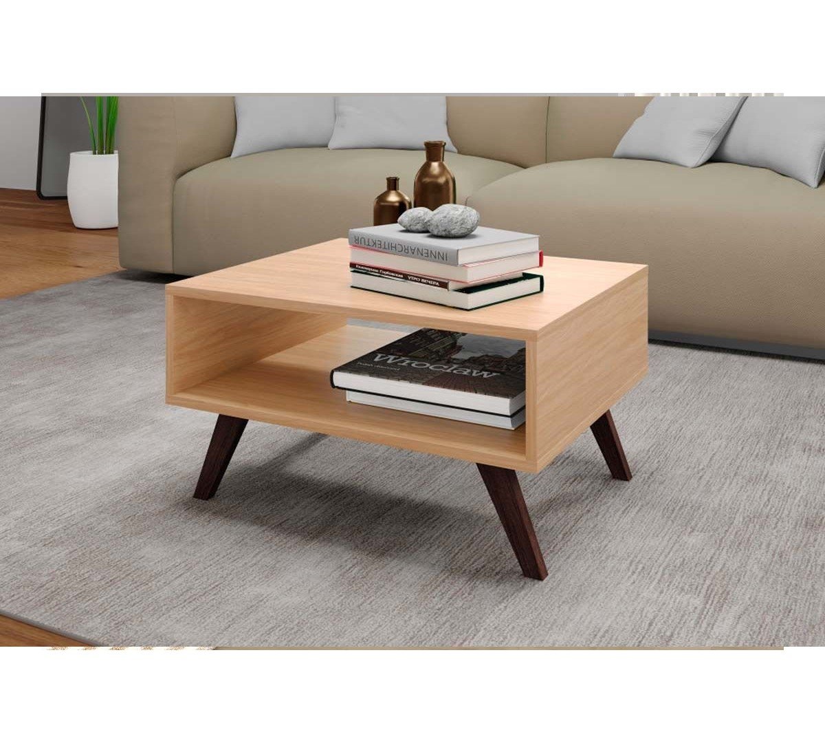 Mesa de centro retro fabricada en MDP de 15 mm y patas de plástico retro.
