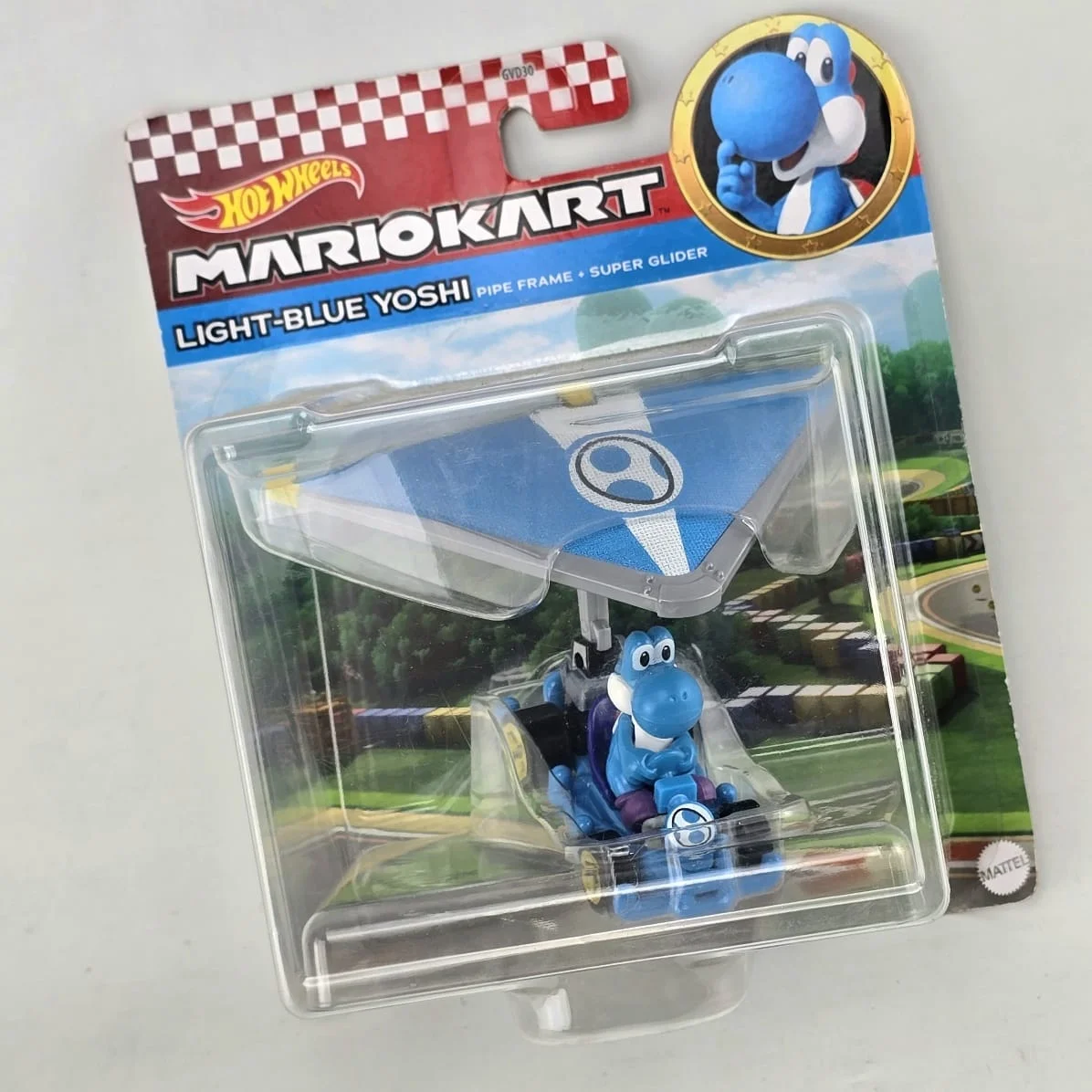 Lote # 69 Mario Kart con planeador HotWheels, Light Blue Yoshi