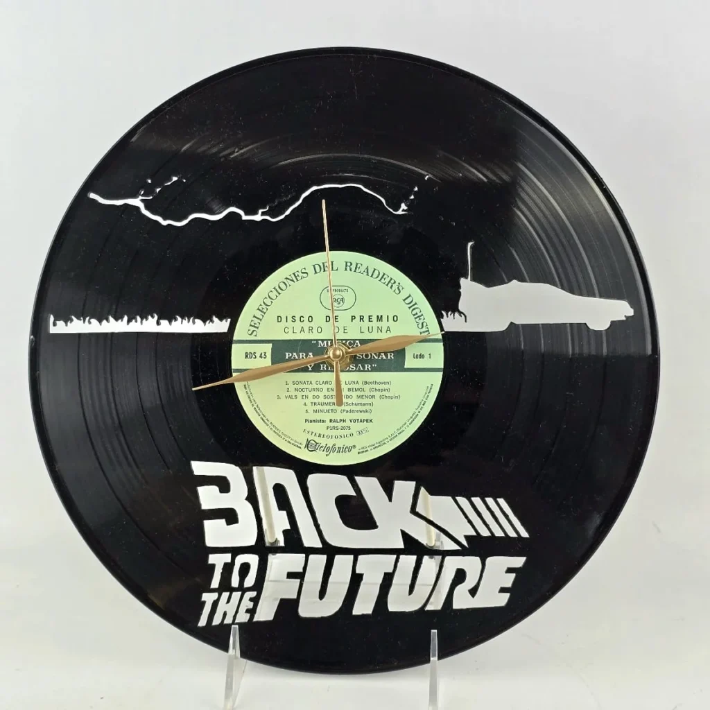 Lote #128 Reloj Back to the Future con disco de vinilo